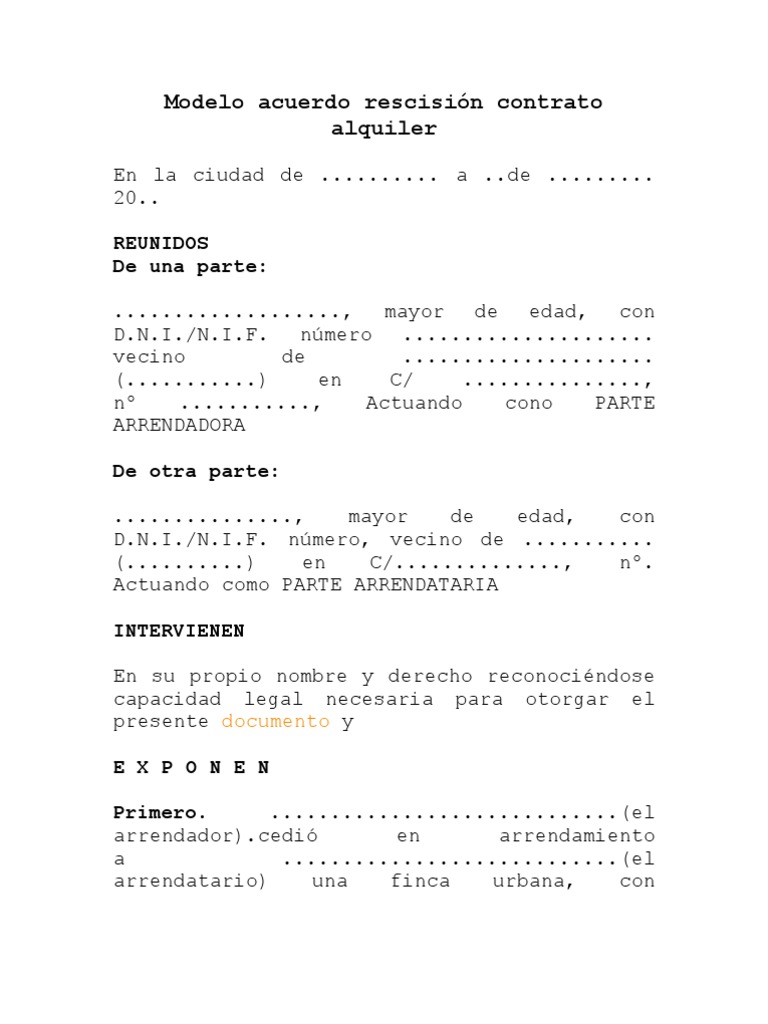 Rescindir el contrato de alquiler de una vivienda antes de tiempo genera cierta confusión. Os dejamos enlace a dos modelos de contrato de alquiler de habitación en función de si es para te enlazo, en formato word, un modelo de contrato de alquiler de habitación (de larga duración) y un modelo hola, he alquilado una habitacion en mi casa y no he echo contrato al compañero de piso. Contrato de arrendamiento de oficina, contrato de arrendamiento de despacho profesional. 90€es el precio más barato hasta ahora. Modelo contrato alquiler vacacional gratis (pdf y word). ¿qué es un contrato de arrendamiento o alquiler? Calefacción individual de imprescindible nómina y contrato de trabajo. Pues es, ni más ni menos que un documento por el cual un propietario cede, para el uso y disfrute, una propiedad o parcela a otra persona durante son muchos los modelos de contrato que podemos encontrar, pero nos gustaría destacar los siguientes La ley permite al inquilino desistir del contrato al cabo de un periodo mínimo de seis meses. Mínimo seis meses de renta. Los contratos de alquiler para uso distinto al de vivienda como es el caso del alquiler de oficina están sujetos a iva. Consulta nuestro modelo de contrato. Información del contrato de arrendamiento y alquiler:
